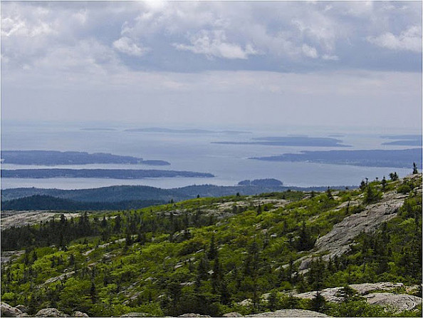 After exploring some of the Carriage Road I headed to Cadillac Mountain. At 1,530 feet this is the tallest mountain in the park. I love great sunrises and if watching an incredible sunrise is on your bucket list, then be sure to visit Cadillac Mountain between the months of October and March to catch the earliest sunrise in the continental United States. The summit of the mountain can be reached by foot, car, motor-coach, or trolley. At the top, visitors will find restrooms and even a gift shop in addition to the wonderful views of the surrounding area. Once on top of the mountain, I decided to take the short paved Cadillac Summit Loop Trail to get a picture-perfect view of the Porcupine Islands – they seemed to float on the horizon in the morning midst.