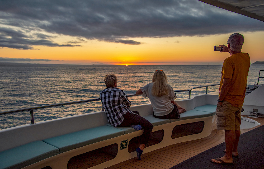 Our next stop is the small island of Rabida, which is famous for its reddish lava rocks that are rich in iron. The deep red shade of the sand surrounded by luxuriant green foliage makes Rabida one of the most photogenic landscapes in the archipelago. Expect a warm welcome here from the resident sea lion colony, flamingos feeding on shrimp, and ducks frolicking in the brackish saltwater pool behind the beach. Our walk today takes us inland for beautiful views of the beach and the lagoon. Along the way, look for Darwin finches, flycatchers, and mockingbirds. In the cliffs and along the coast you might be lucky enough to spot Nazca & blue-footed boobies, brown noddy, herons, marine iguanas, lava lizards, and two species of sea lions: Galapagos and fur seals.